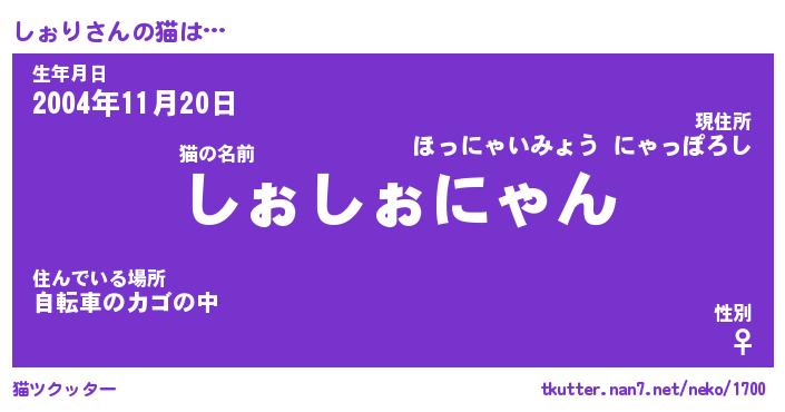 | ヘコむあだ名 | 『しぉもー』『牛乳』『しぉっ子』 |