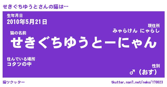 | 伝説のあだ名 | 『封印されしスナイパーせきぐちゆうと』 |