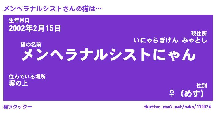 | ポケモン風あだ名 | 『メンチュウ』『メンヘダネ』 |