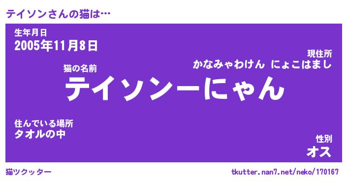 | ポケモン風あだ名 | 『テイチュウ』『テイソダネ』 |