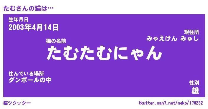 | 生年月日? …「くろねこ」 | 8月01日 10:16 |