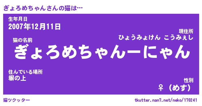 | ツイッター | ぎょろめちゃんさんのツイッターID『fukuyoka_idle』 |