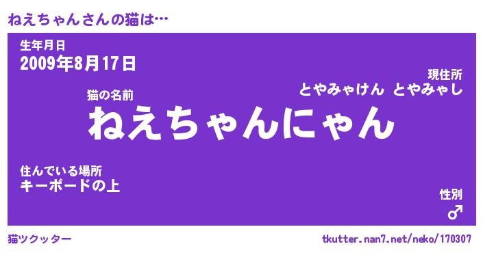 | 生年月日? …「くろねこ」 | 8月01日 10:16 |
