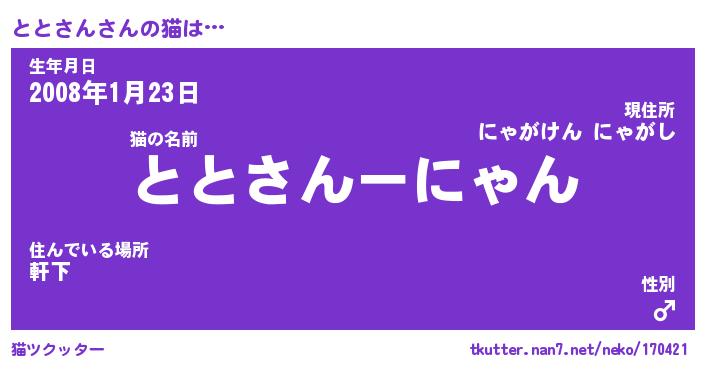 | 意味不明あだ名 | 『ペロリンととさん』『永久保存ととさん』 |