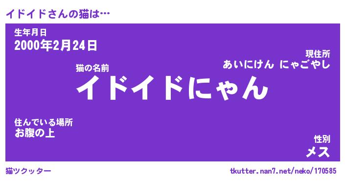 | 意味不明あだ名 | 『ペロリンイドイド』『永久保存イドイド』 |