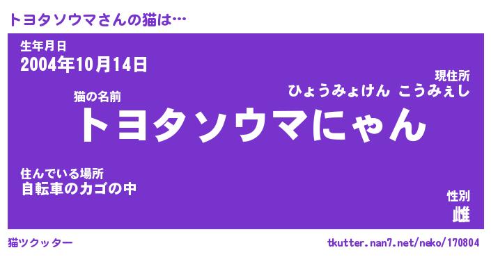 | 女子向けラノベタイトル風あだ名 | 『(仮)トヨタソウマのやんごとなき事情』 |