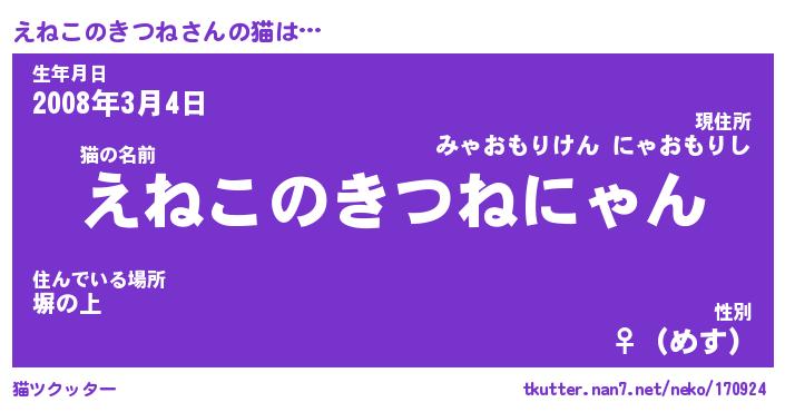 | 男性向けラノベタイトル風あだ名 | 『えねこのきつねの憂鬱』 |