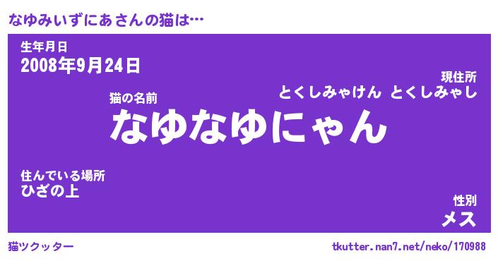 | ヘコむあだ名 | 『なゆにゅー』『なまこ酢』『なゆを』 |
