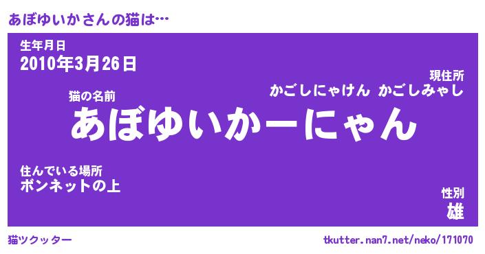 | ポケモン風あだ名 | 『アボチュウ』『アボユダネ』 |