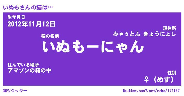 | 意味不明あだ名 | 『ペロリンいぬも』『いぬもフォーエバー』 |