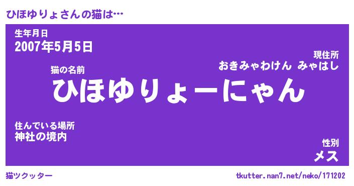| ファンタジー風あだ名 | 『ヒホフェル』『エターナルヒホユリョー』 |