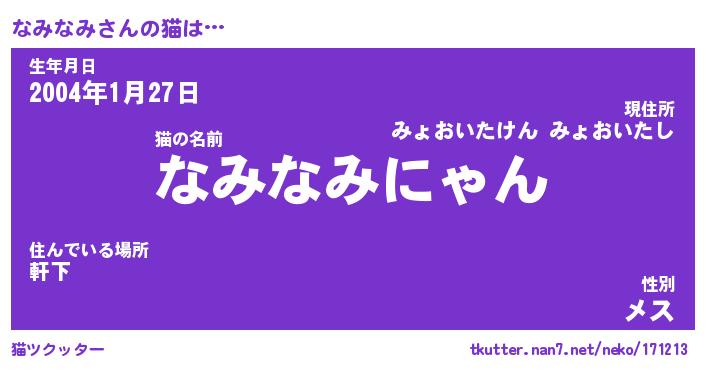 | 自動車の名前っぽいあだ名 | 『ナミティマ』『ナクア』『ナント』 |