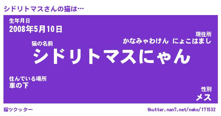| 男性向けラノベタイトル風あだ名 | 『シドリトマスの憂鬱』 |