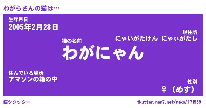 | ポケモン風あだ名 | 『ワガチュウ』『ワガラダネ』 |