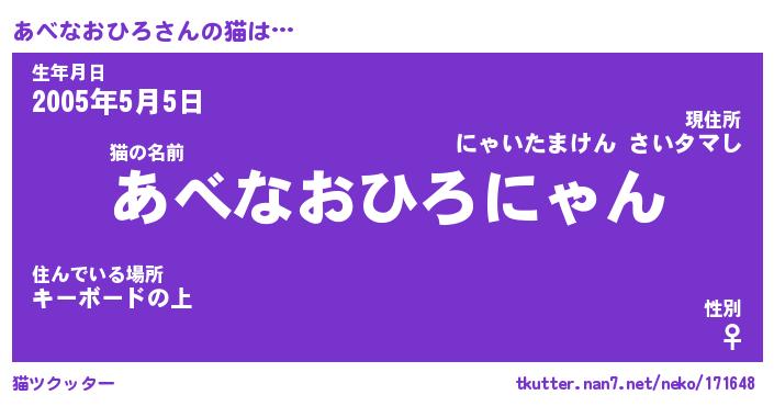 | 男性向けラノベタイトル風あだ名 | 『あべなおひろの憂鬱』 |