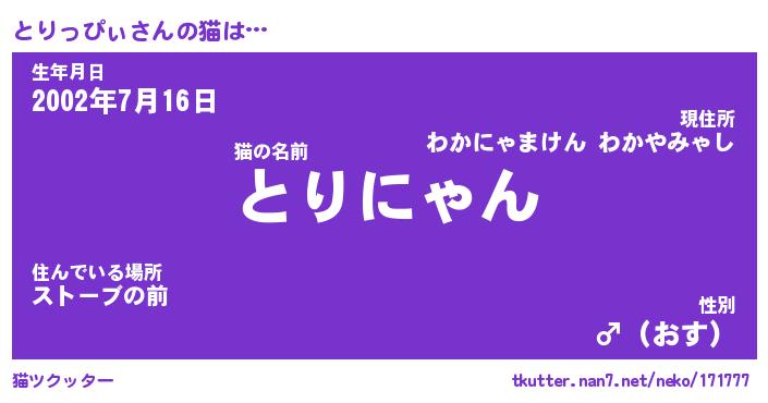 | 男性向けラノベタイトル風あだ名 | 『とりっぴぃの憂鬱』 |