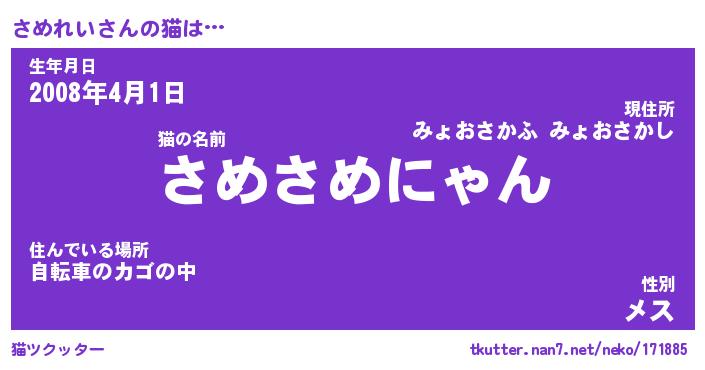 | 欧米人風あだ名 | 『マイケルさめれい』『ウサインさめれい』 |
