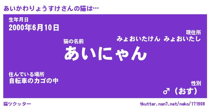 | 生年月日? …「くろねこ」 | 8月01日 10:16 |