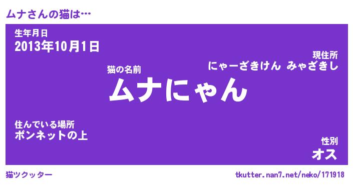 | ヘコむあだ名 | 『ムナもー』『つくし』『ムナを』 |