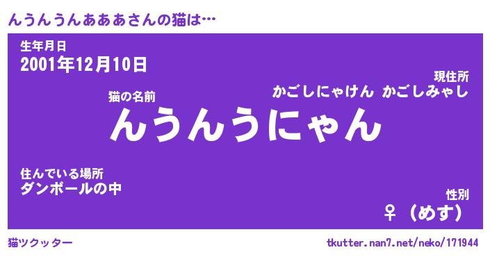 | ポケモン風あだ名 | 『ンウチュウ』『ンウンダネ』 |