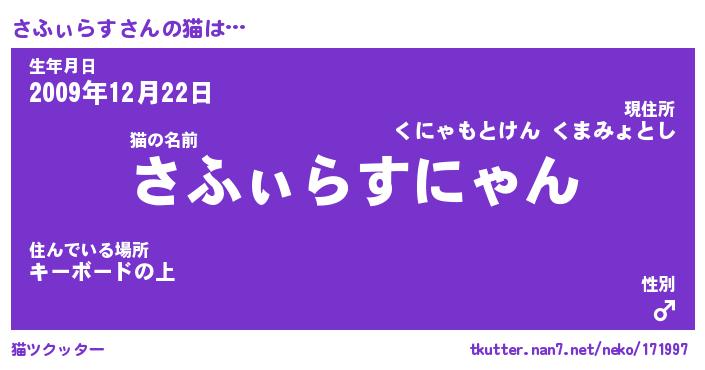 | 男性向けラノベタイトル風あだ名 | 『さふぃらすの憂鬱』 |