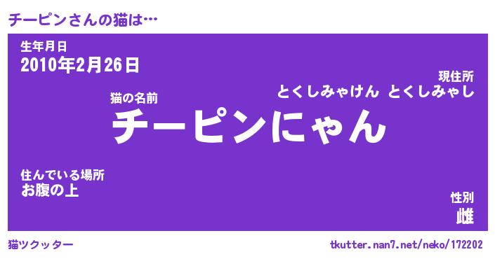 | ポケモン風あだ名 | 『チーチュウ』『チーピダネ』 |
