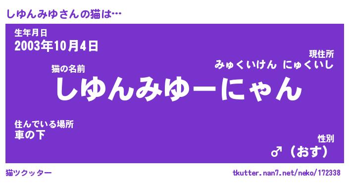 | ファンタジー風あだ名 | 『シユフェル』『エターナルシユンミユー』 |