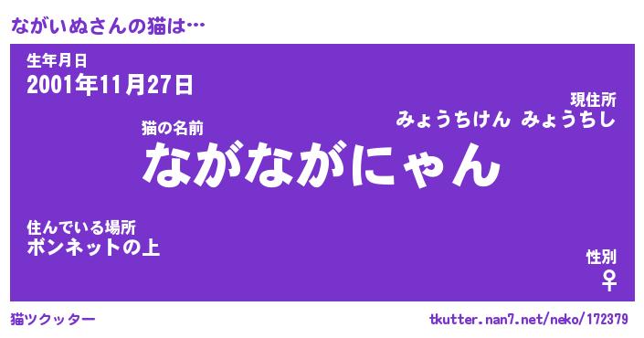 | 意味不明あだ名 | 『ペロリンながいぬ』『永久保存ながいぬ』 |