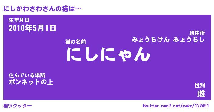 | ポケモン風あだ名 | 『ニシチュウ』『ニシカダネ』 |