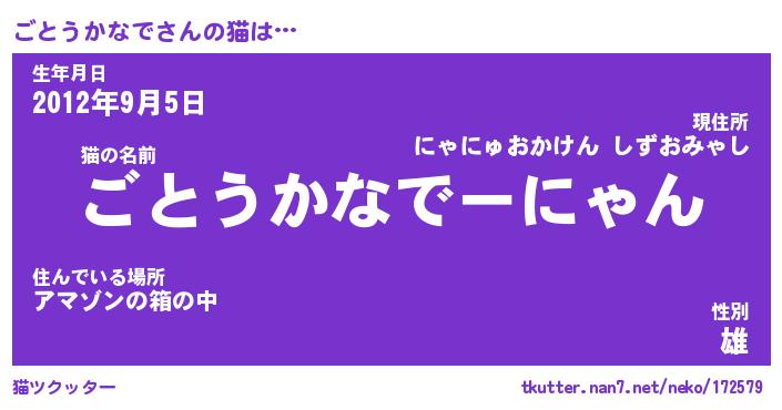 | ツイッター | ごとうかなでさんのツイッターID『namakemono_man』 |