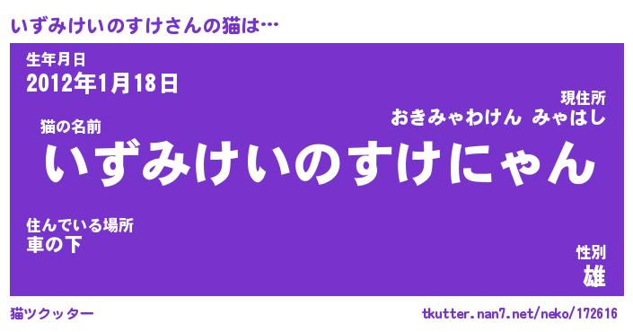 | 男性向けラノベタイトル風あだ名 | 『いずみけいのすけの憂鬱』 |