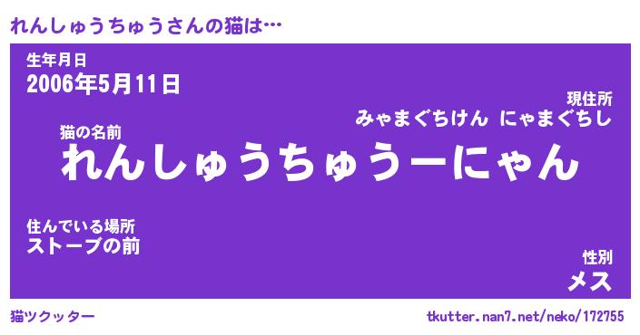 | ツイッター | れんしゅうちゅうさんのツイッターID『neet_nyan』 |