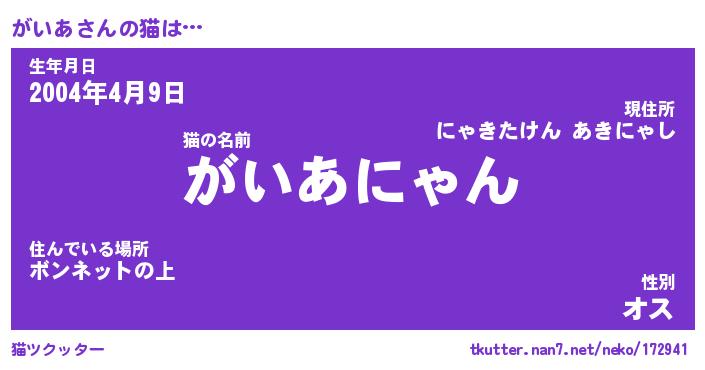 | 意味不明あだ名 | 『ペロリンがいあ』『がいあフォーエバー』 |
