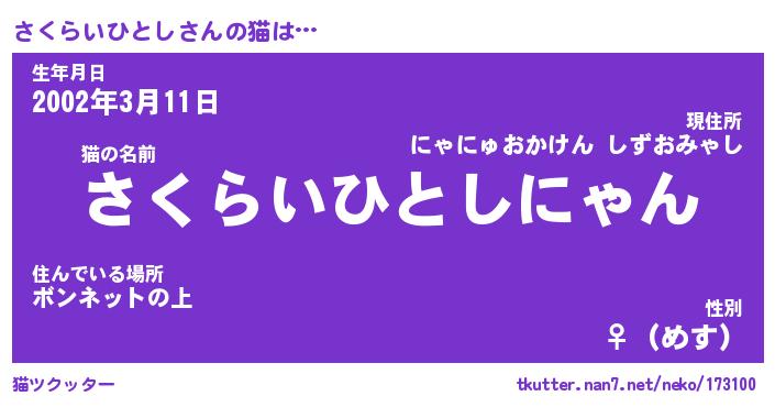 | 生年月日? …「くろねこ」 | 8月01日 10:16 |