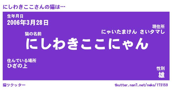 | 男性向けラノベタイトル風あだ名 | 『にしわきここの憂鬱』 |