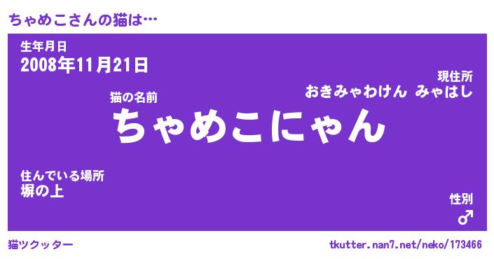 | 男性向けラノベタイトル風あだ名 | 『ちゃめこの憂鬱』 |