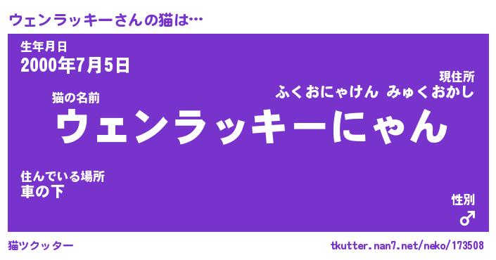 | ポケモン風あだ名 | 『ウェチュウ』『ウェンダネ』 |