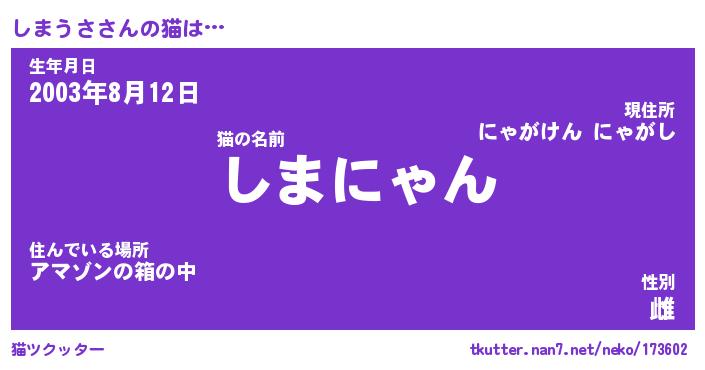 | 男性向けラノベタイトル風あだ名 | 『しまうさの憂鬱』 |