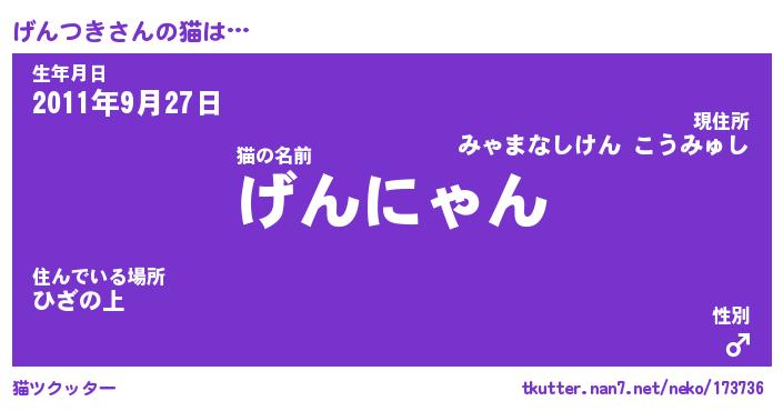 | 男性向けラノベタイトル風あだ名 | 『げんつきの憂鬱』 |
