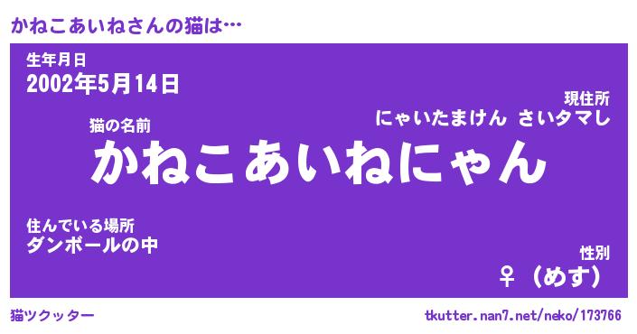 | 欧米人風あだ名 | 『マイケルかねこあいね』 |