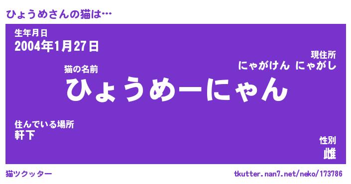 | 意味不明あだ名 | 『ペロリンひょうめ』『永久保存ひょうめ』 |