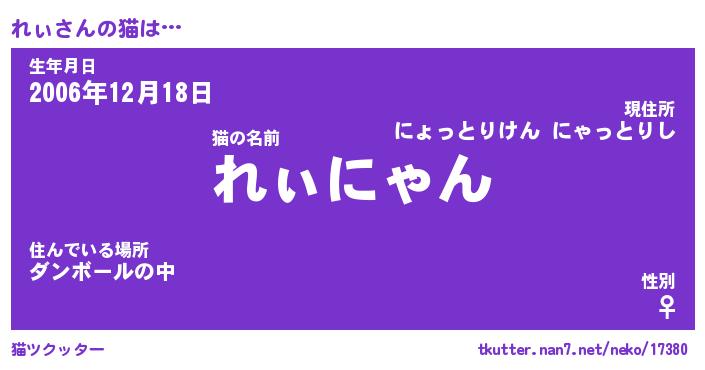 | ポケモン風あだ名 | 『レィチュウ』『レィダネ』『ヒレィ』 |