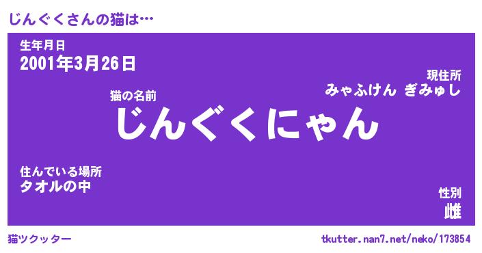| 意味不明あだ名 | 『ペロリンじんぐく』『永久保存じんぐく』 |