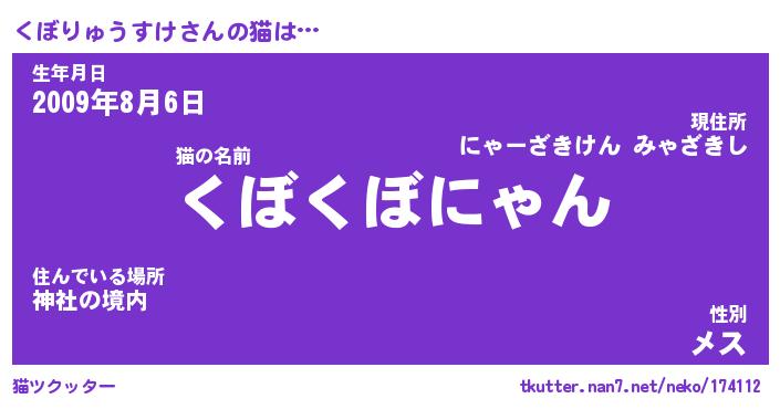 | ツイッター | くぼりゅうすけさんのツイッターID『dendenmushi_nyan』 |