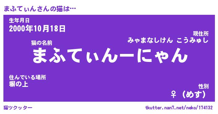 | ファンタジー風あだ名 | 『マフフェル』『エターナルマフティンー』 |