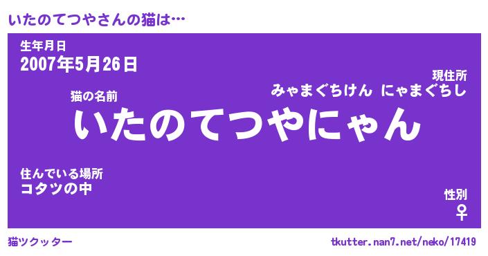 | 肩書あだ名 | 『いたのてつや御曹司』 |