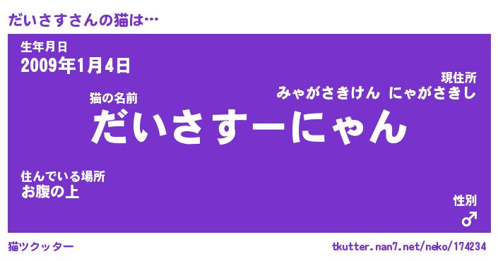 | 意味不明あだ名 | 『ペロリンだいさす』『永久保存だいさす』 |