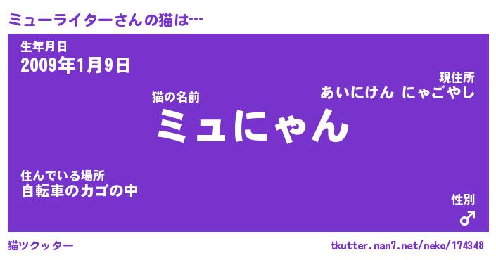 | 男性向けラノベタイトル風あだ名 | 『ミューライターの憂鬱』 |