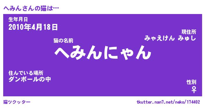 | 意味不明あだ名 | 『ペロリンへみん』『へみんフォーエバー』 |