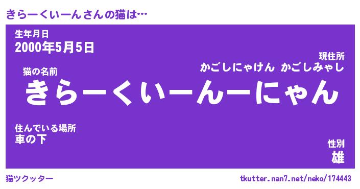 | 自動車の名前っぽいあだ名 | 『キラティマ』『キクア』『キント』 |